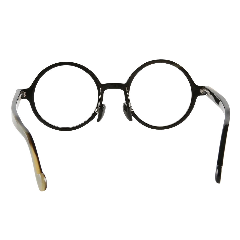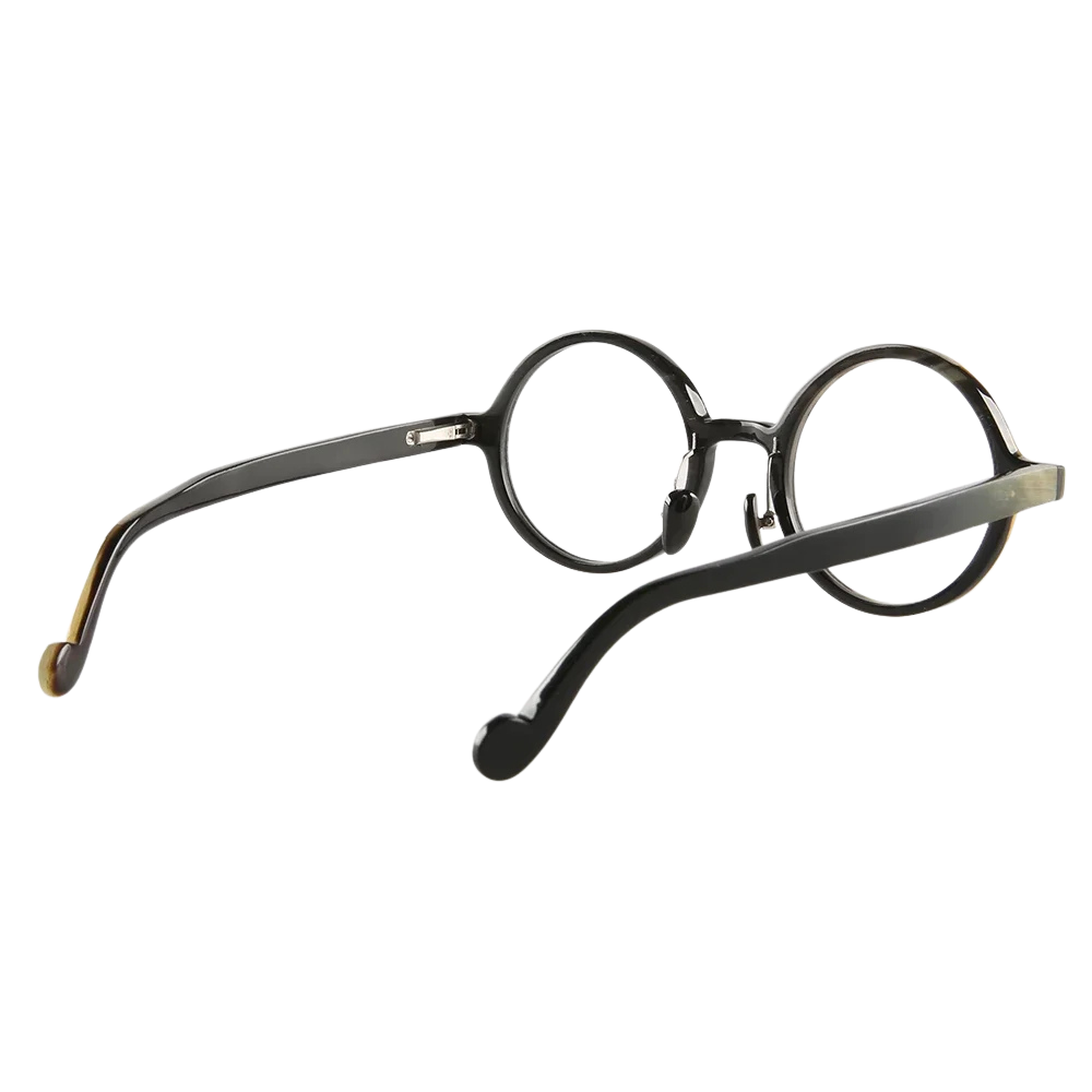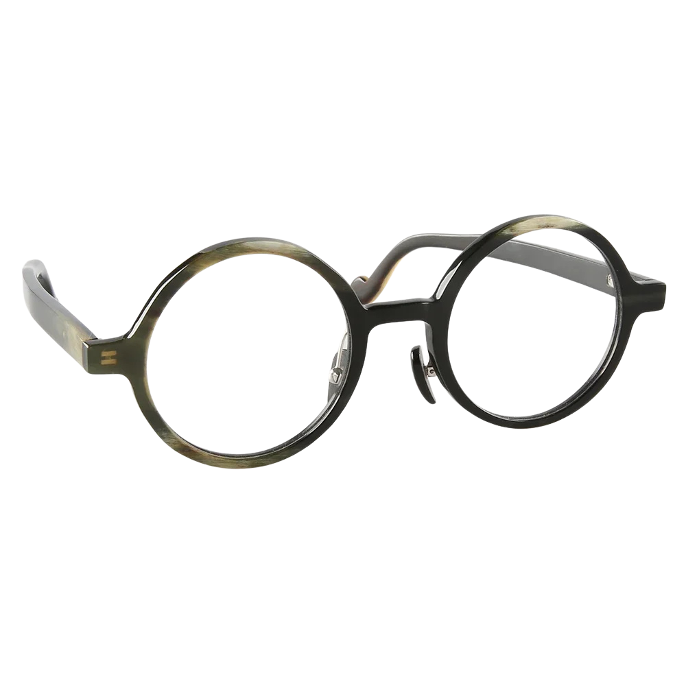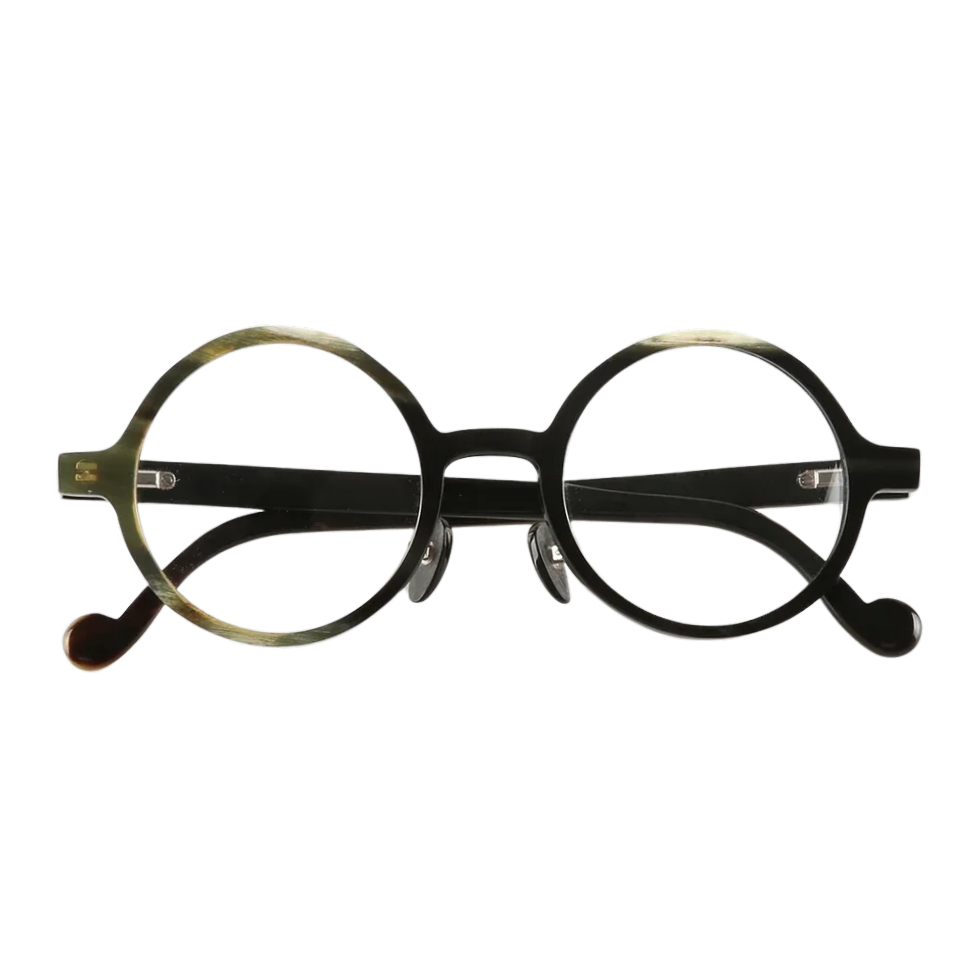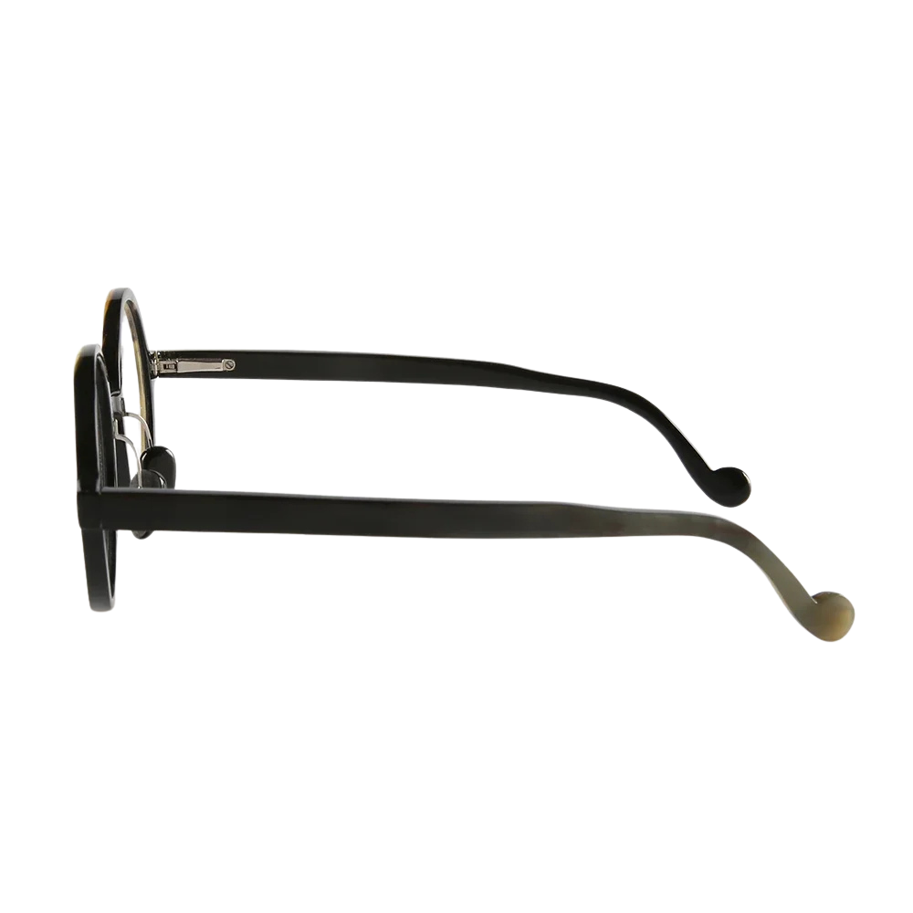 Our atelier can finish Loop in a spectrum of horn tones—from forest-green flecks to smoky charcoal—and glaze it with prescription optics, gradient sun lenses, or photochromic lenses. Stainless-steel pad-arms allow minute nose-pad adjustments; spring hinges add strength without bulk, while curled temple ends improve day-long stability.
