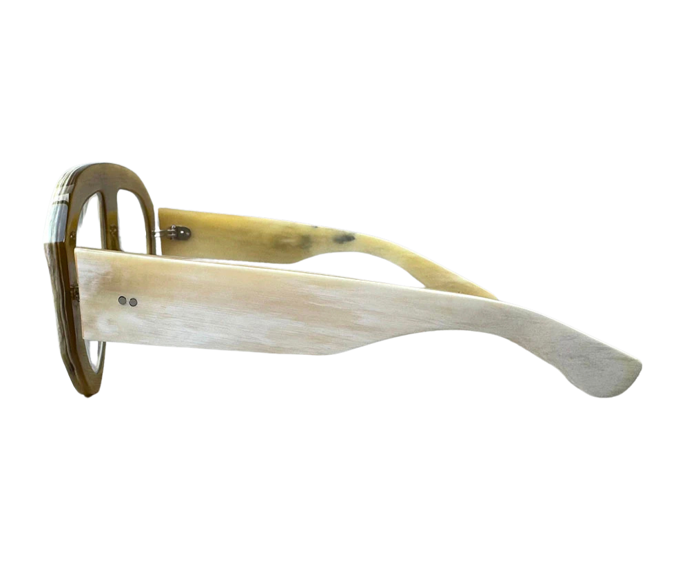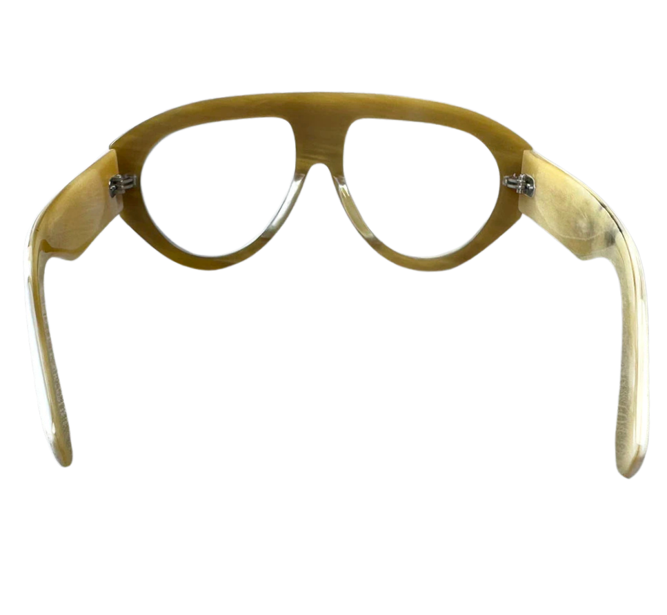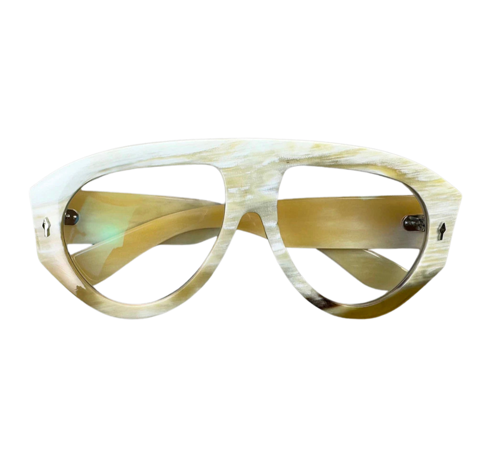 Volt is an oversized aviator eyeglass frame handcrafted from 100% natural buffalo horn. Lightweight, hypoallergenic, and entirely unique—each frame boasts its own character with custom horn tones. Available in a range of natural shades and measurements for a timeless luxury look.